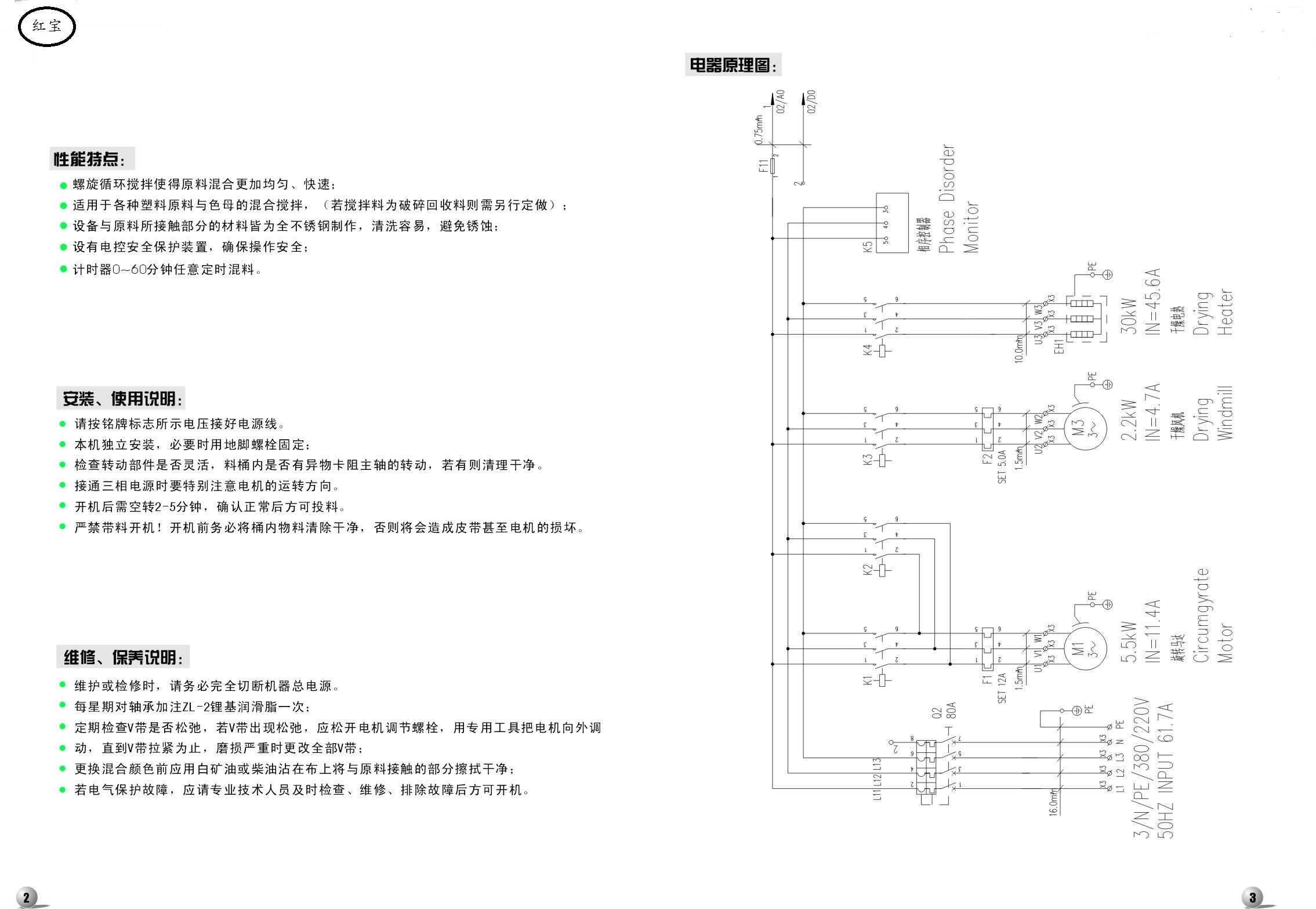 8、干燥混合功能二合一,但不需要干燥時,只需將“加熱開關”及“風機開關”關閉,本系列機型即可用于塑料攪拌均化用途,一機二用;